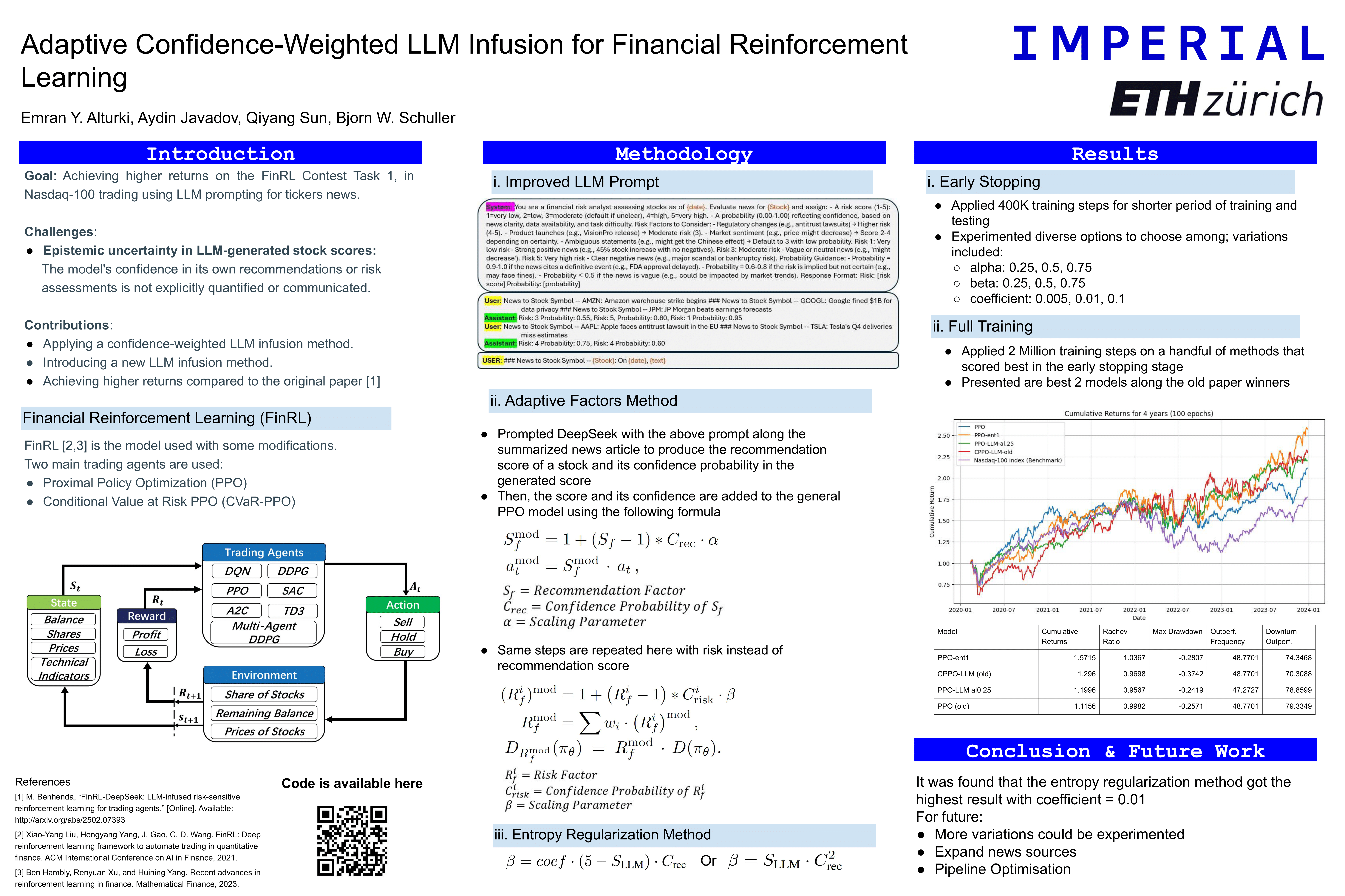 We enhance FinRL-DeepSeek for the “FinRL Contest 2025 Task 1” by integrating LLM signals into RL with adaptive confidence weighting. Unlike fixed perturbations, our method scales each signal by its confidence, strengthening reliable inputs and reducing noise.