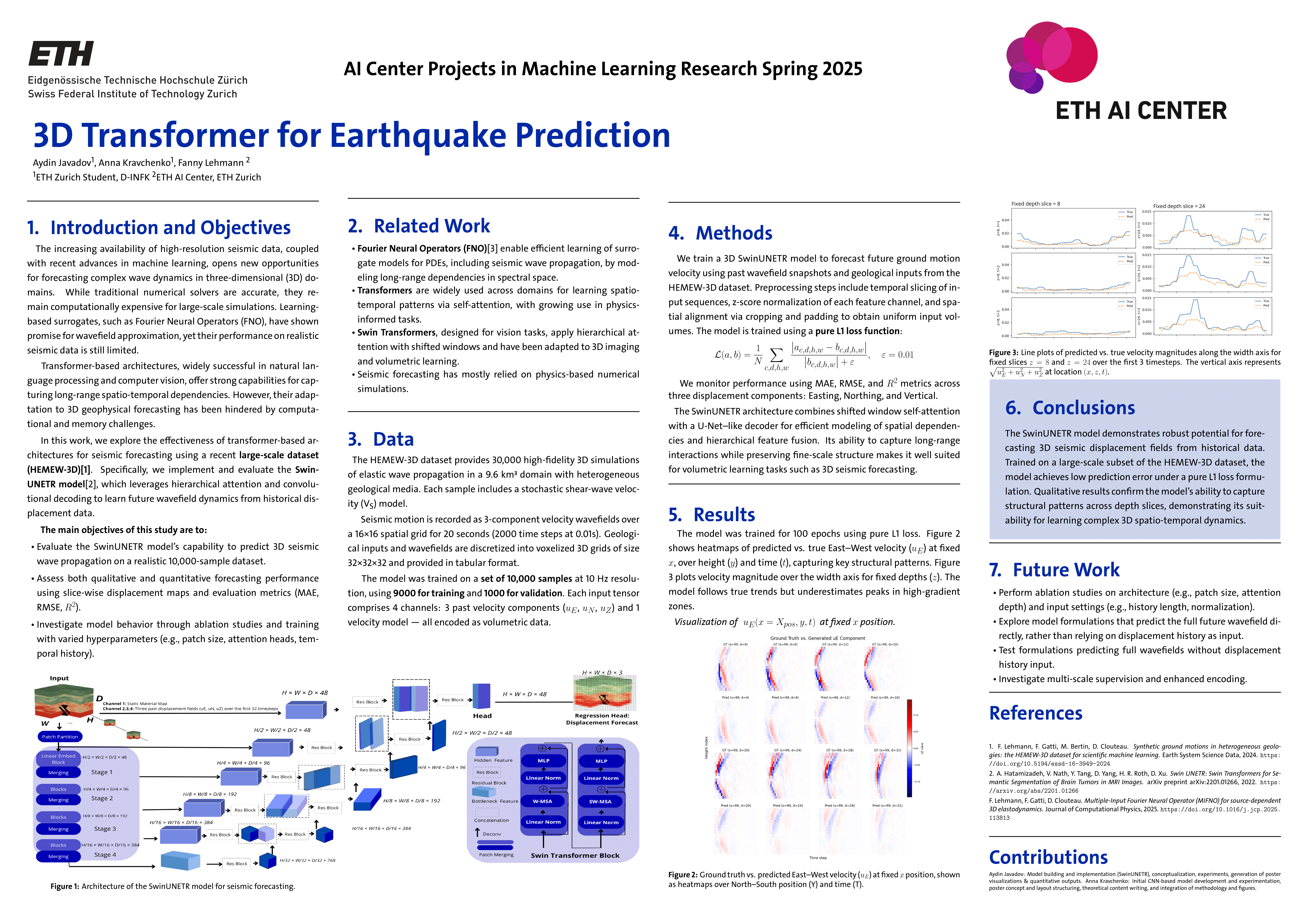 (HEMEW-3D). Specifically, we implement and evaluate the Swin-UNETR model[2], which leverages hierarchical attention and convolutional decoding to learn future wavefield dynamics from historical displacement data.
